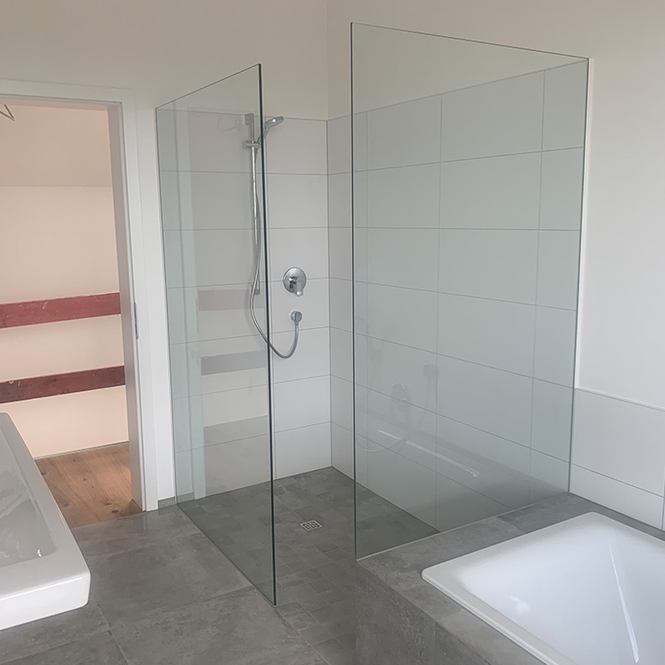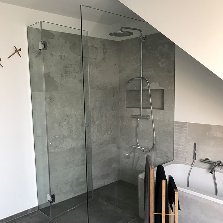 Individuell, praktisch, maßangefertigt - unsere einzigartige Einbauweise von Duschabtrennungen aus ESG begeistert die Kunden immer wieder. Die rahmenlose Ausführung der Duschabtrennungen.