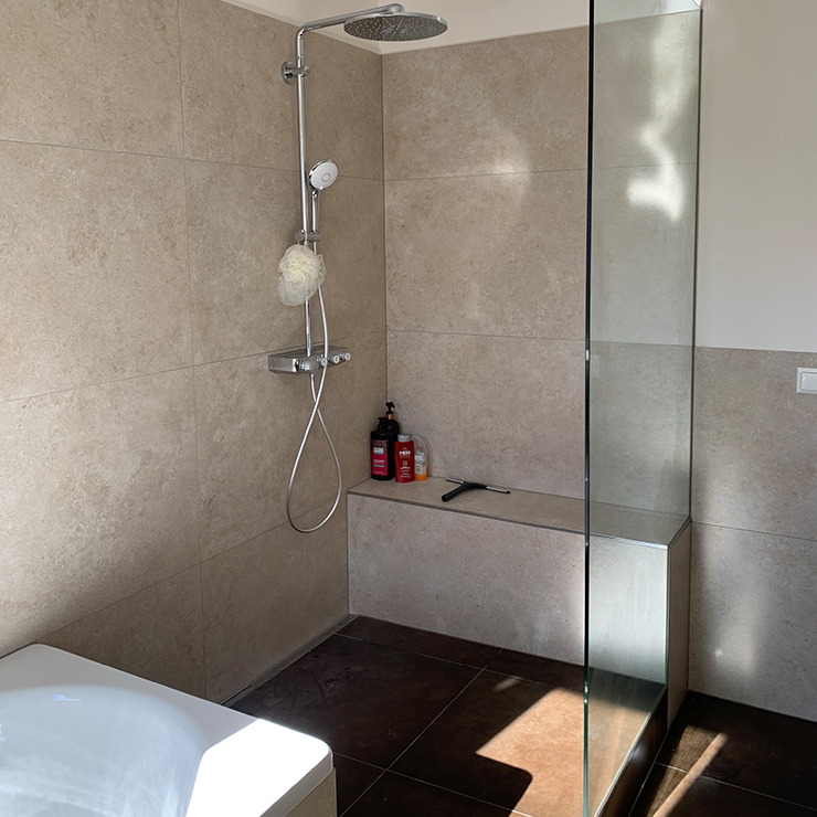 Die Arbeit mit Feinsteinzeug in allen Formaten ist unser Kerngeschäft. Ganz im Zeichen der modernen Zeit verlegen wir professionell großformatige Fliesen bis zu 300 cm. Ob Wand- und Bodenbelag, Verkleidungen für Kamin und Küchenschränke, Sitzbank in der Dusche oder Nischen - ganz nach Ihren individuellen Wünschen.